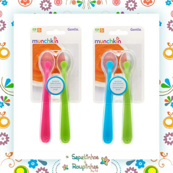 As colheres longas e de ponta macia da Munchkin são uma maneira colorida de começar sólidos com o bebê. Cada colher tem uma forma arredondada de silicone macio, para ser o mais suave possível para as gengivas delicadas do bebê.