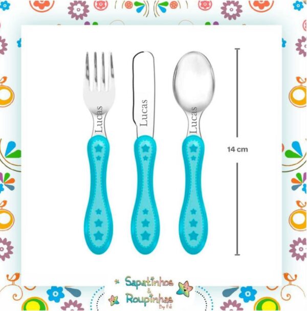 O kit talher 3 peças estrelinha da Buba veio para facilitar a vida dos pequenos.O momento da refeição do seu pequeno é muito importante, e por isso a Bubadesenvolve materiais de ótima qualidade para tornar essa hora o mais agradável possível. Os talheres possuem formato ergonômico para os pequenos segurarem facilmente. Possui pontas arredondadas para deixar esse momento mais seguro, e o material é feito em aço inoxidável, mais resistente, higiênico e fácil de limpar.