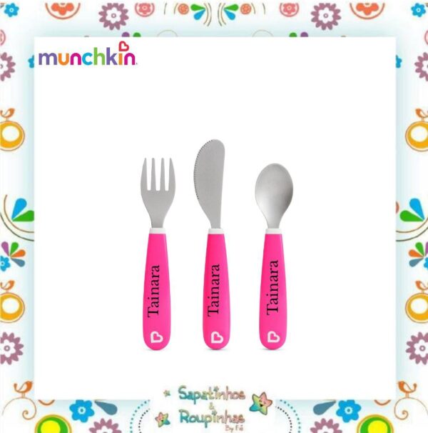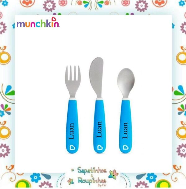 Conjunto de talheres coloridos para crianças, com design ergônomico e borda da faca segura para a manipulação, além do tamanho ideal para crianças. trazendo segurança e autonomia para os pequenos, facilitando e estimulando o uso de talheres na hora da alimentação.