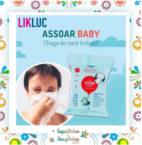 Assoar Baby Lenços Umedecidos com Solução Salina O produto que toda mamãe estava procurando chegou!!! Acabou nariz escorrendo ou rosto irritado e vermelhinho por conta de limpar com papel. O Assoar Baby é a solução do seu problema é mais novo integrante da família do Aspirar Baby, os lenços umedecidos com soro fisiológico para nariz e rosto. Os narizinhos mais limpos do que nunca, sem todo aquele choro. Diferente dos lenços comuns, sua fórmula exclusiva possui solução salina e ingredientes naturais para a correta limpeza do nariz do bebê.