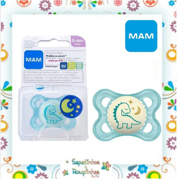 Clássica chupeta MAM, com design especial e atenção aos detalhes, a Chupeta MAM Original Night possui um botão que brilha no escuro, fácil de encontrar, material 100% seguro.