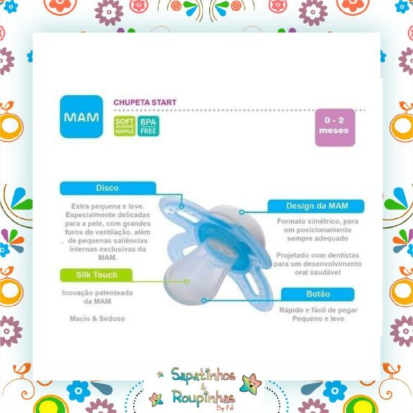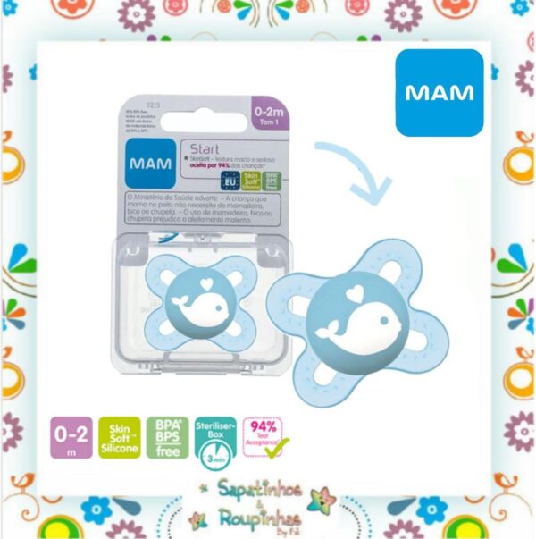 Recomendado por especialistas médicos, para bebês desde o nascimento, a Chupeta Start da MAM foi desenhada especialmente para reduzir o risco de dentes desalinhados.