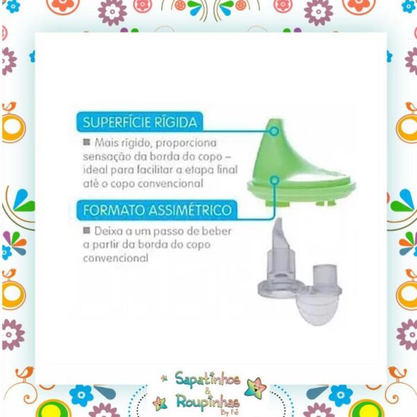 O bocal rígido facilita a transição do copo de treino para o copo comum