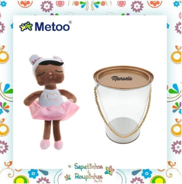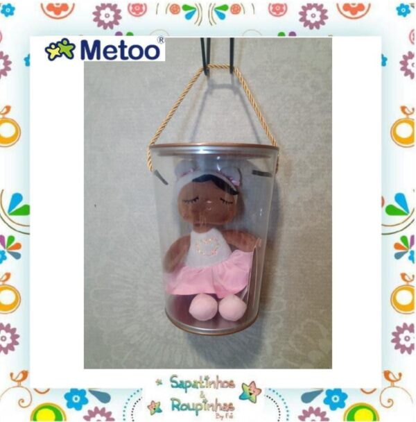 Metoo – Kit Mini doll Maria 20cm + Balde cônico transparente com tampa personalizada com gravação a laser