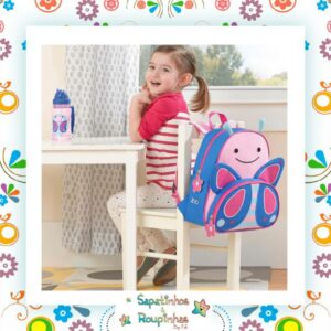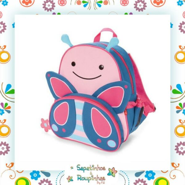 A mochila possui compartimento principal amplo e espaçoso, bolso lateral em malha ideal para guardar garrafinha, bolso frontal ideal para lanches, bolsos extras perfeitos para armazenar pequenos itens, alças de ombro ajustáveis, alça de mão e fechamento por zíper. Com tema divertido de Borboleta, é ideal para o dia a dia da criança!