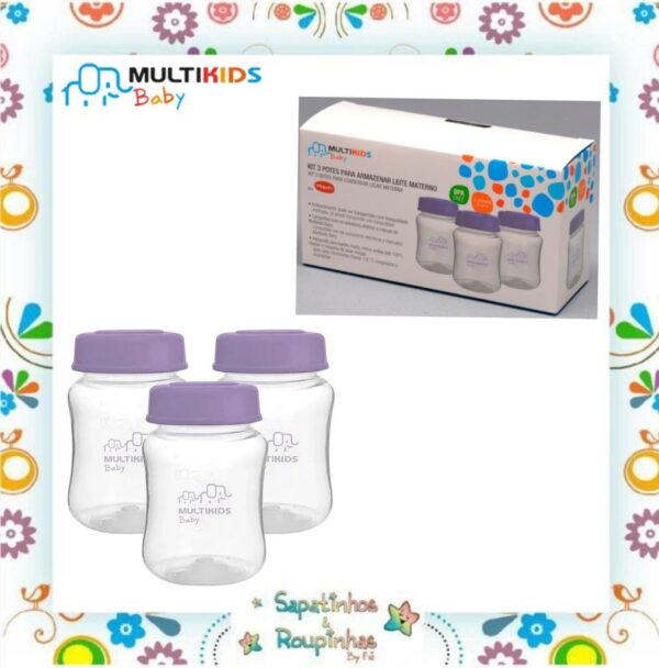 Multikids baby – Kit 3 potes para armazenar leite materno