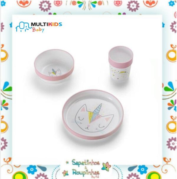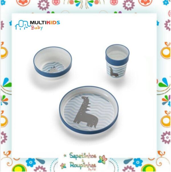 O kit alimentação é perfeito para refeições pois vem com um prato fundo, um prato raso e um copinho.