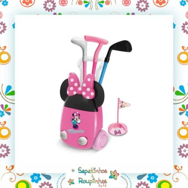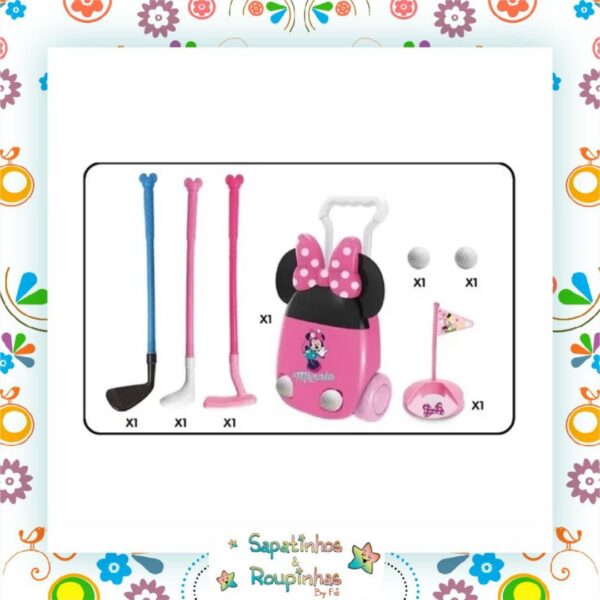 Portátil, o Kit de Golfe da Minnie armazena todos os seus acessórios e possibilita a brincadeira aonde quiser, seja dentro ou fora de casa.