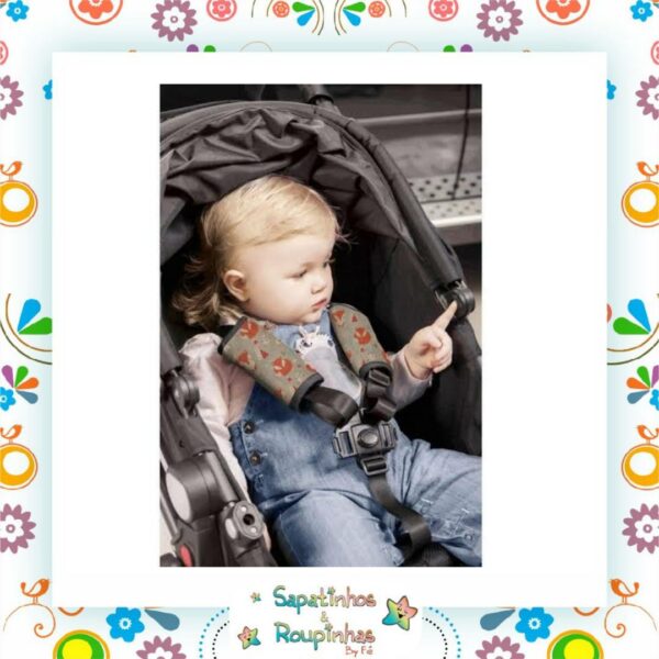 O Protetor de Ombro para cintos de cadeiras e carrinhos protege o bebê contra as irritações causadas pelo cinto do carro em contato direto com a pele.