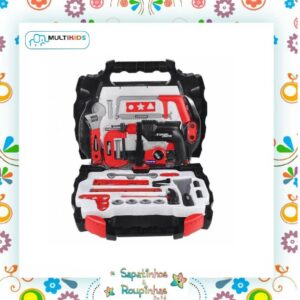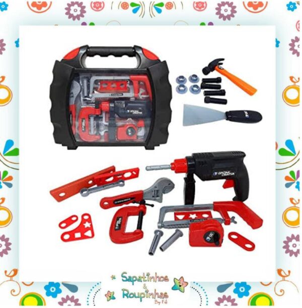 Com essa maleta as crianças vão se sentir verdadeiros conquistadores, trabalhando em seus próprios projetos imaginários. Eles vão martelar, perfurar e medir tudo com seu próprio conjunto de ferramentas.