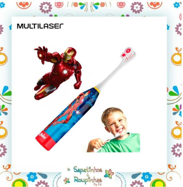 Multilaser – Escova Dental Infantil Elétrica Homem de Ferro Kids Health Pro