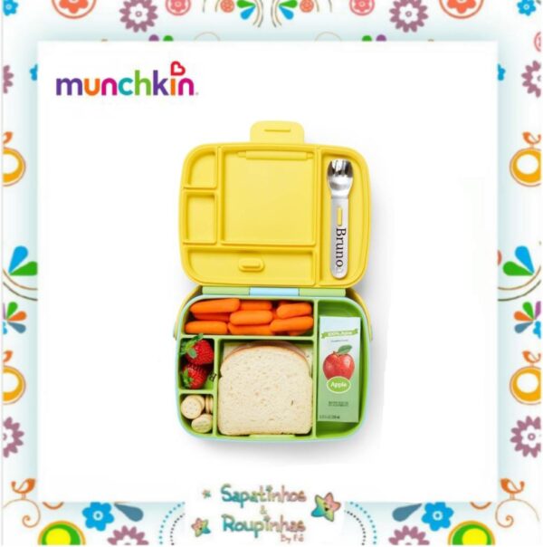 As crianças em idade pré-escolar podem ser particulares sobre tudo – especialmente comida. A lancheira Bento Munchkin com utensílios está aqui para resgatar você de comer exigente, problemas de embalagem de almoço. Projetado para caber em pequenas porções e mãos pequenas, nossa caixa infantil Bento é o que se trata de almoços escolares saudáveis. Livre-se de sacos descartáveis e embale almoço, lanches, guloseimas e tudo em uma caixa de estilo bento que é tão bonita quanto prática. Os 5 compartimentos divididos garantem que os alimentos não toquem e são a mistura certa de tamanhos para uma refeição nutritiva e adequada para crianças. A lancheira infantil Bento vem com seu próprio conjunto de utensílios infantis de aço inoxidável que se encaixam diretamente na tampa. Fale sobre como concluir uma refeição infantil com estilo!