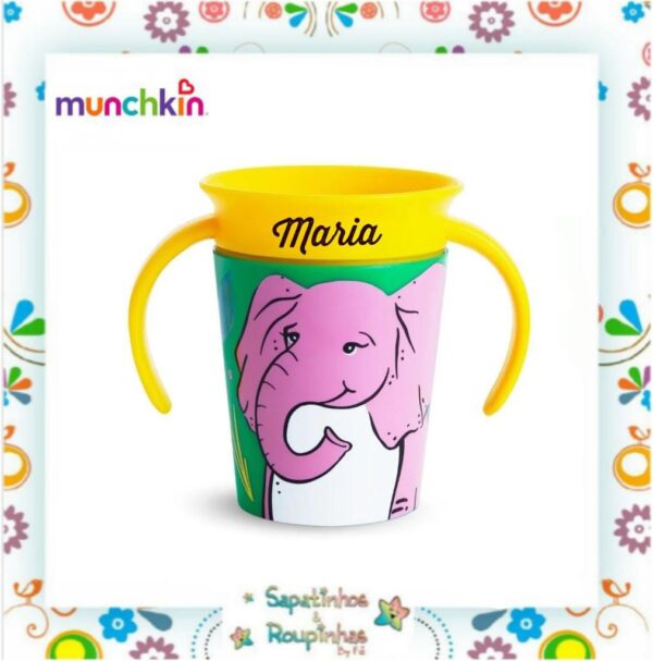 Munchkin- Copo de Treinamento 360° 6m+ 177ml Wild elefante com gravação a laser
