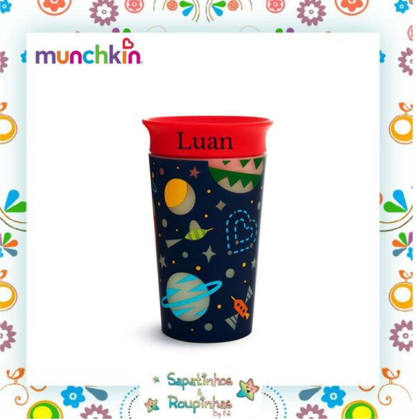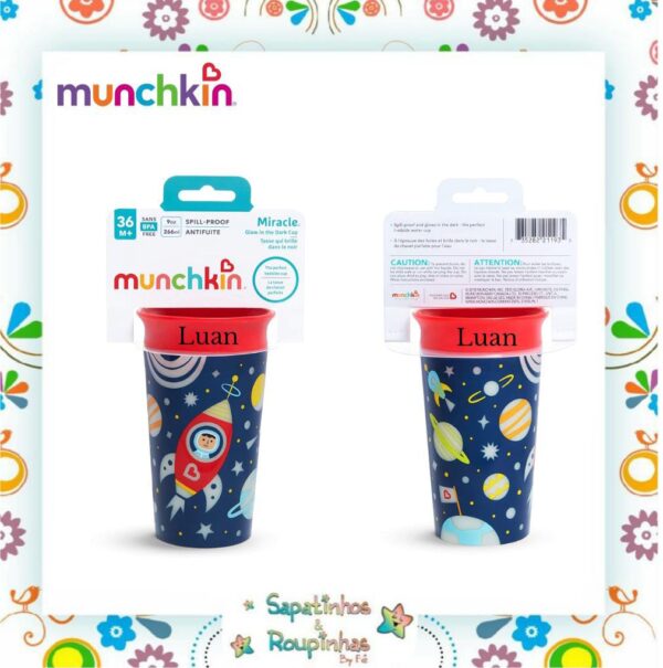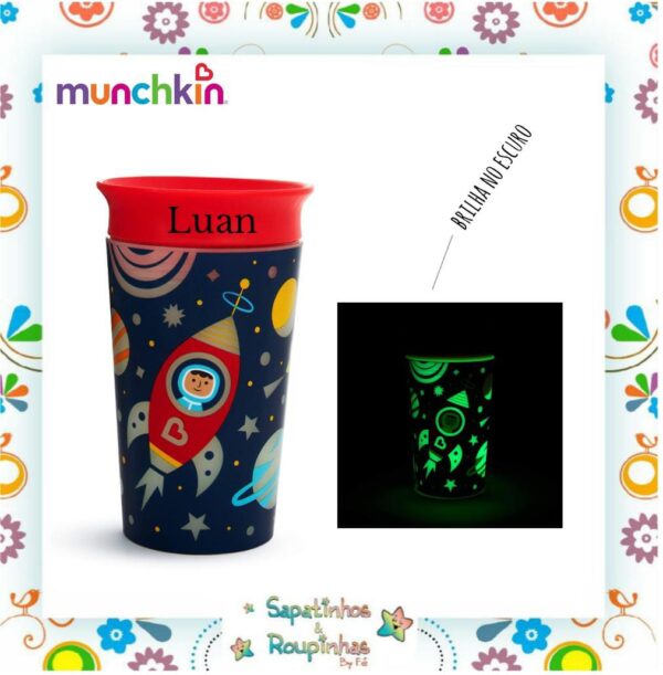 Munchkin – Copo Grande 360 Glow 266ml astronauta com gravação a laser