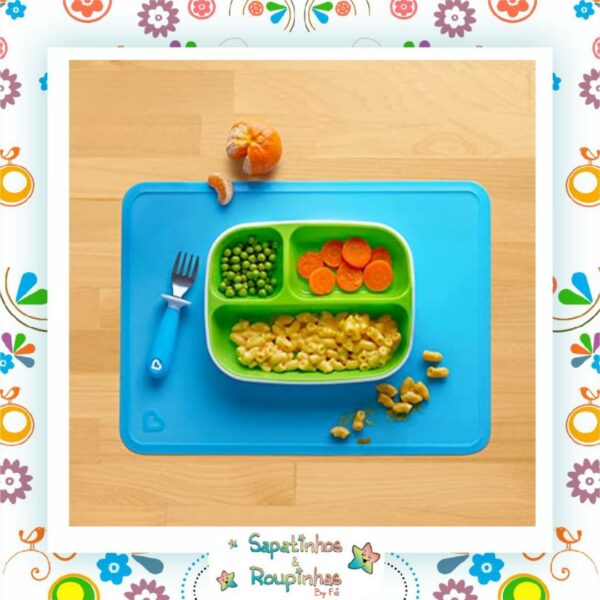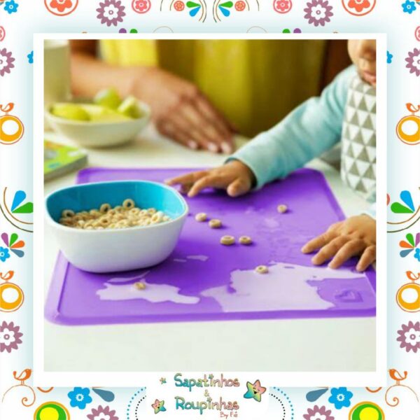 Indicado para auxiliar durante as refeições, evitando sujeiras, o jogo americano da Munchkin é fofo e possuem cores vibrantes que chamam a atenção dos pequenos!