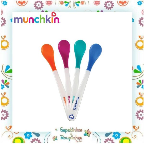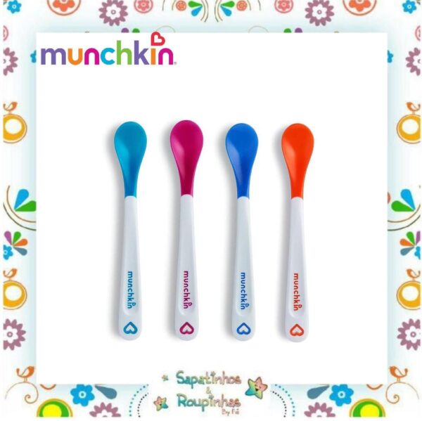 A Colher Termo Sensível da Munchkin ® é ideal para a fase de introdução de alimentos sólidos na vida do bebê. O kit acompanha quatro colheres de cores diversas que tem a tecnologia ‘White Hot’ que alerta quando o alimento está muito quente. Para isso, mergulhe a colher na comida, mexa por 10 segundos e se sua ponta ficar branca é porque está quente (cerca de 43,3°C). Quando isso acontecer, espere o alimento esfriar um pouco e faça novamente. Se a ponta continuar colorida, você pode alimentar seu pequeno sem medo.