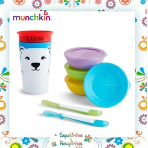 Munchkin – Kit conjunto de tigelas e colheres + Copo grande 360 wild urso polar com gravação a laser