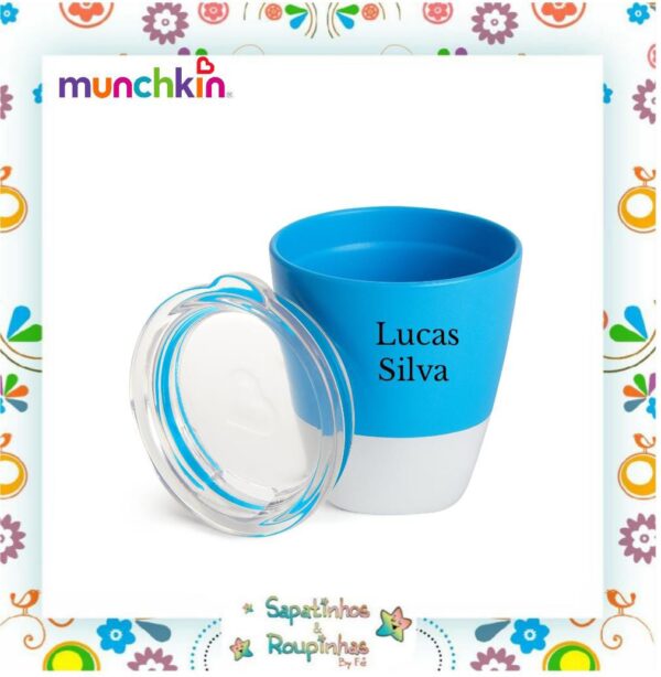 Munchkin – Kit Prato de treinamento com ventosa + Jogo Americano Infantil + Talheres infantis + Tijela Bowls + Copo com tampa removível com gravação a laser