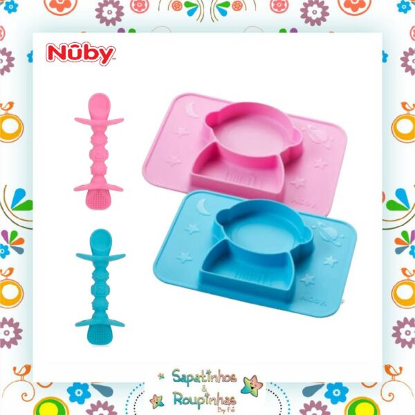 Chega de bagunça na hora da alimentação. O Jogo Americano com Prato de Silicone Astronaut Mat foi desenvolvido para apresentar os alimentos para os pequenos de forma lúdica, estimulando a curiosidade e independência. E o melhor, sem derramar comida pelo chão, pois a base de sucção garante que o prato fique firme sobre a superfície. Fixa-se facilmente em superfícies planas; A sucção evita que a criança derrube ou desloque o prato com o alimento; Com 2 divisórias que permitem servir alimentos diferentes, sem misturar; Pode ser levado à máquina de lavar louças. Composição: 100% Silicone Livre de bpa.