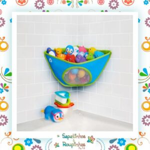 Mantém os brinquedos organizados e secos. Possui quatro ventosas que podem ser ajustadas da direita para a esquerda. Para limpar: lave com as mãos, com água fria. Atenção: Previna afogamentos, nunca deixe a criança sozinha durante o banho, sempre mantenha a criança ao alcance de suas mãos, sempre cheque a temperatura com as mãos antes de colocar a criança na banheira. Este produto não é brinquedo, deve ser usado apenas para a função recomendada.