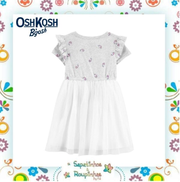 Sua pequena vai se sentir tão mágica quanto um unicórnio neste divertido vestido de tule com detalhes de babados nos ombros e estampa de unicórnio na parte superior!