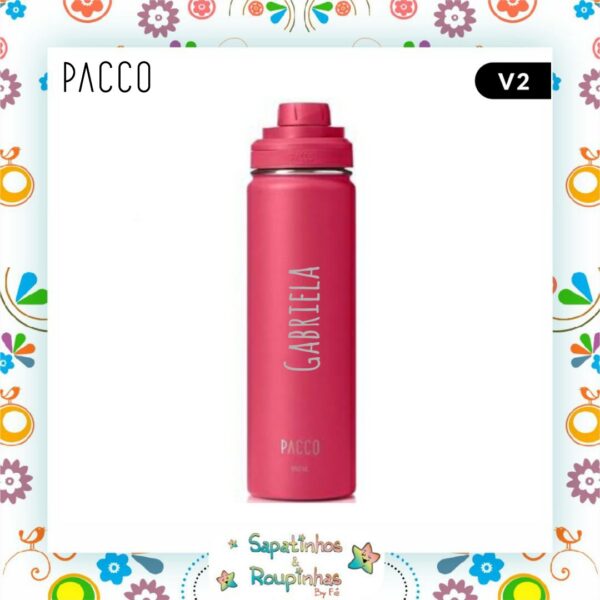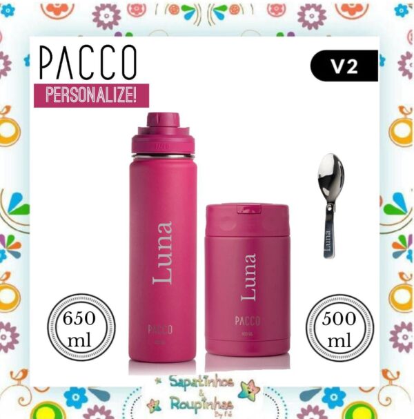 Pacco – Kit Garrafa Térmica HydraV2 650ml Fúcsia + Pote Térmico Food Jar Fúcsia 500ml preto com gravação a laser