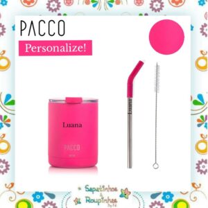 Pacco – Kit HappyCup Térmico 295ml Pink + Canudo Eco Pink com gravação a laser
