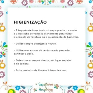 O acúmulo de saliva e/ou resíduos da água, alimentos, batom ou outros produtos pode comprometer a sua tampa e torná-la impropria para o uso! Por isso, a higienização diária e completa é recomendada.
