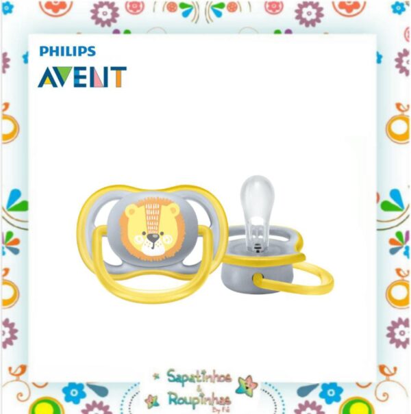 Chupeta Ultra Air Philips Avent, uma chupeta leve e com aberturas de ar para a pele sensível do bebê de ar e com botão que brilha no escuro.