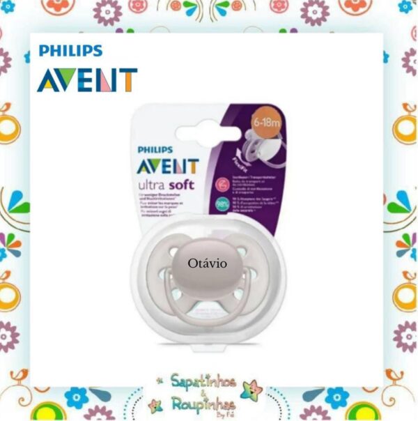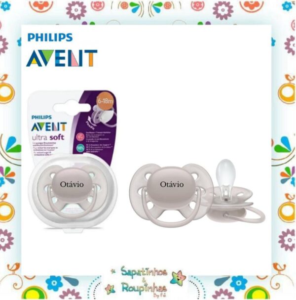 Philips Avent – Chupeta Ultra Soft Cinza 6-18M tamanho 2 com gravação a laser