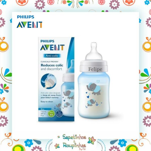 Philips Avent – Mamadeira Anti-Colic Elefantinho 260ml linha Classic Com Gravação A Laser