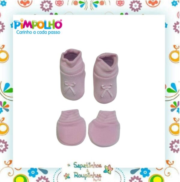 01 Kit Par de luvas e Par de sapatinhos Rosa