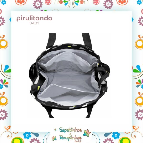 Possui cinco bolsos internos, sendo um grande transparente, dois pequenos e dois pequenos nas laterais. Perfeita para carregar todos os itens essenciais do seu pequeno.