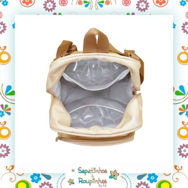 Possui dois bolsos internos, sendo perfeita para carregar todos os itens essenciais do seu pequeno