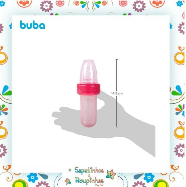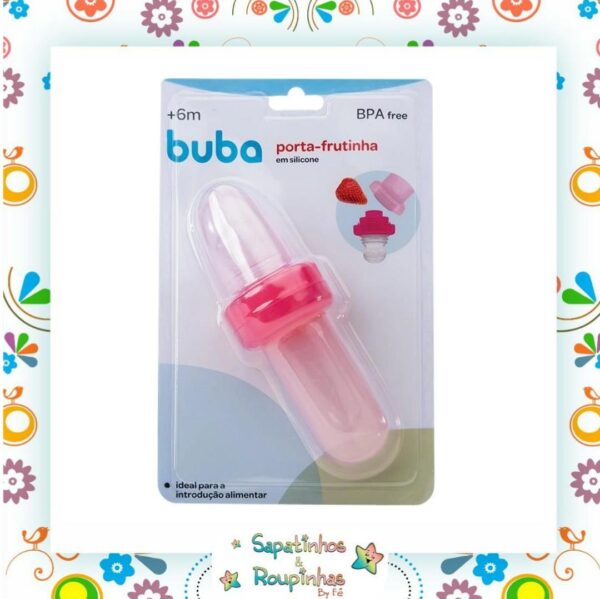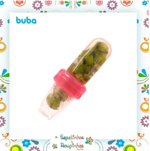 Quando o bebê chega em uma determinada fase, a partir dos 6 meses, ele necessita ingerir outros alimentos além do leite materno. Nesse momento são introduzidos na alimentação frutas e legumes. O Porta-Frutinha da Buba permite que o bebê descubra novos sabores e deguste-os de forma segura, pois evita a ingestão de pedaços grandes que podem causar engasgamento. Além disso, ele estimula o processo de auto alimentação do bebê. Feito em material livre de BPA e ftalatos e em silicone macio com furinhos é perfeito para gengivas delicadas. A linha de alimentação da Buba traz itens práticos que facilitam a vida das mães e acompanham as diversas fases da criança contribuindo para um crescimento saudável.
