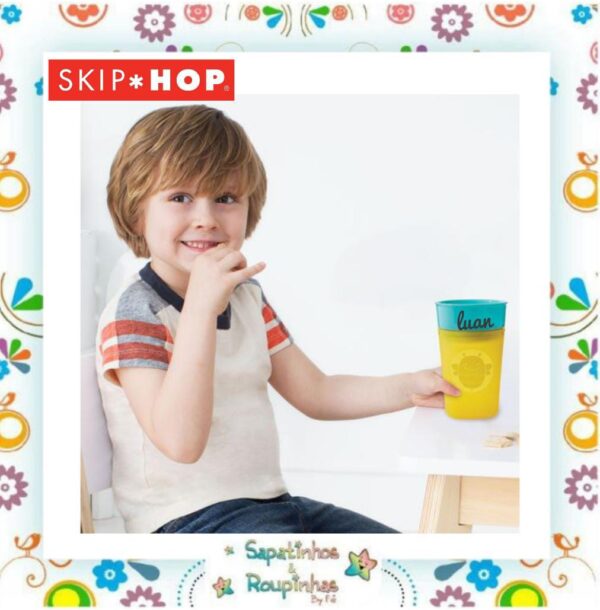 Skip Hop – Kit Copo de treinamento zoo abelha 266ml + prato de treinamento zoo abelha com gravação a laser