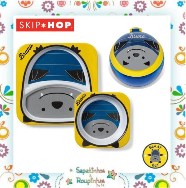 Skip Hop – Kit Prato e Bowl morcego + Porta Snack morcego com gravação a laser
