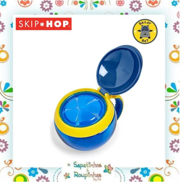 O Porta Snack morcego da Skip Hop incentiva lanches independentes sem bagunça! Com capacidade de 222 ml, vem com alça de fácil manuseio com o tamanho certo para mãos pequenas e a tampa superior de encaixe garante que os alimentos permaneçam frescos. A abertura interna flexível evita que os lanches se espalhem – mesmo se estiver tombado. Os pequenos vão amar fazer as refeições com os amiguinhos Zoo!