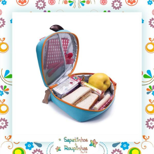 Com bolso interno para colocar utensílios ou bolsinha para gelo/água quente, caso queira manter a temperatura por mais tempo. Possui alça com clipe que pode ser acoplada a bolsa da mãe ou a mochila da criança. Alça possui regulagem, porém não é possível utilizar de forma transversal.