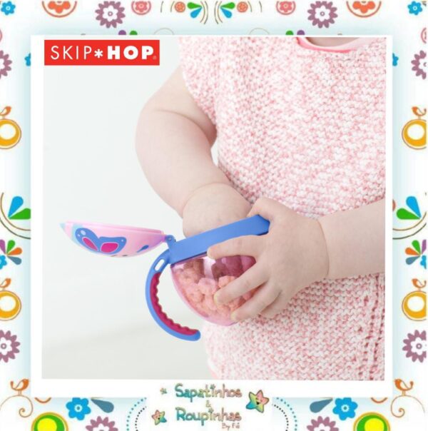 O Porta Snack Zoo borboleta da Skip Hop incentiva lanches independentes sem bagunça! Com capacidade de 222 ml, vem com alça de fácil manuseio com o tamanho certo para mãos pequenas e a tampa superior de encaixe garante que os alimentos permaneçam frescos. A abertura interna flexível evita que os lanches se espalhem – mesmo se estiver tombado. Os pequenos vão amar fazer as refeições com os amiguinhos Zoo!