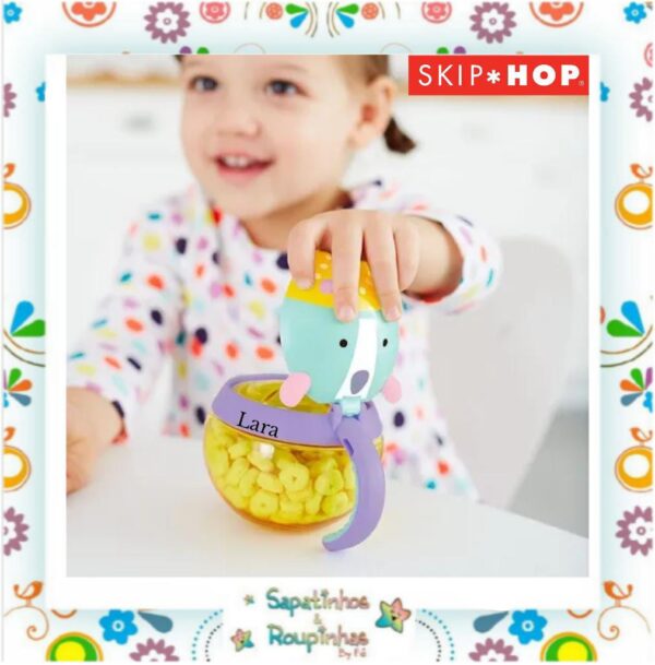 O Porta Snack Zoo Unicórnio da Skip Hop incentiva lanches independentes sem bagunça! Com capacidade de 222 ml, vem com alça de fácil manuseio com o tamanho certo para mãos pequenas e a tampa superior de encaixe garante que os alimentos permaneçam frescos. A abertura interna flexível evita que os lanches se espalhem – mesmo se estiver tombado. Os pequenos vão amar fazer as refeições com os amiguinhos Zoo!