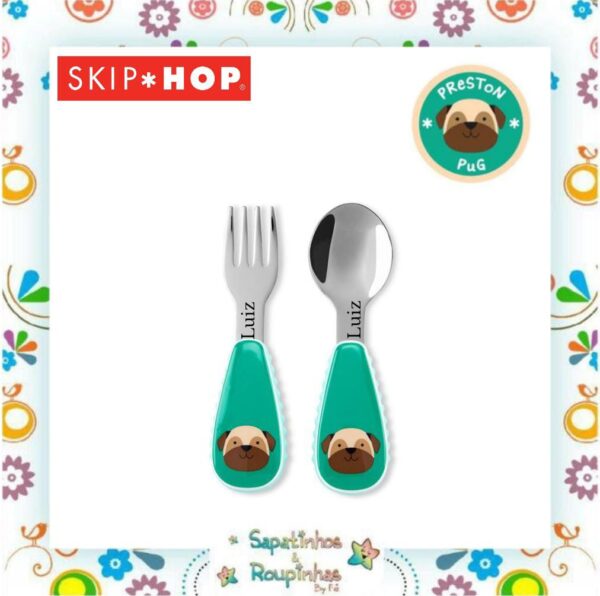 Skip Hop – Talheres Zoo Cachorro Pug 12m+ com gravação a laser