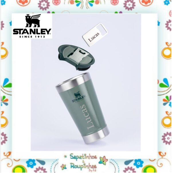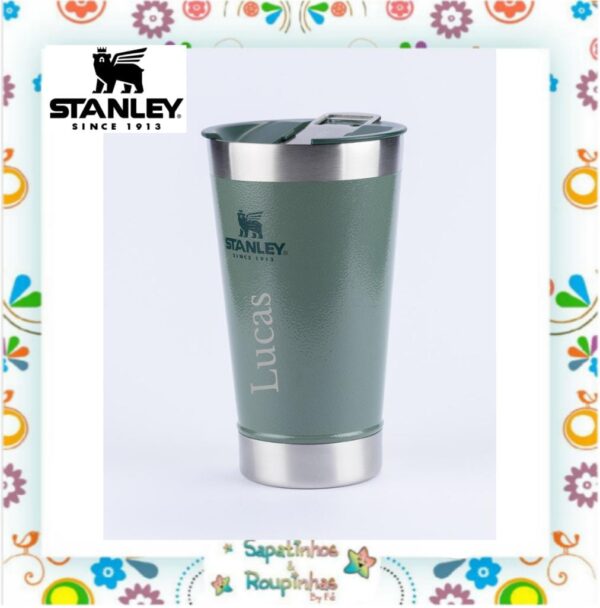 Stanley – Copo térmico de cerveja com tampa Hammertone Green 473ml com gravação a laser