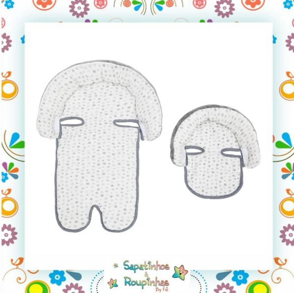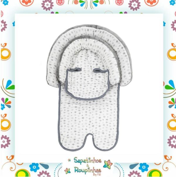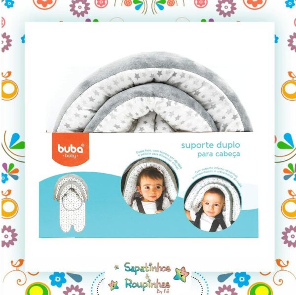 O suporte duplo para cabeça da buba é apropriado para bebês desde o nascimento. Com suporte interno removível que se encaixa confortavelmente. Acompanhando o crescimento do bebê. Para bebês maiores. Basta remover a parte interna. Foi desenvolvido para dar conforto e segurança ao pequeno. Pois evita que a cabecinha caia para os lados. Dupla face. Com tecidos em meia malha de algodão e plush para diferentes climas. Em tamanho universal. O suporte de cabeça é ideal para o uso em carrinhos. Bebê conforto. Cadeirinha para carros e de descanso. Linda estampa lúdica de estrelinhas na cor cinza.