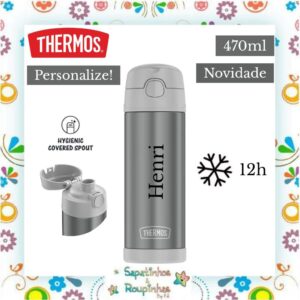 Thermos – Kit Squeeze Térmica Havai 530ml Prata e Copo Térmico Dublin 400ml com gravação a laser