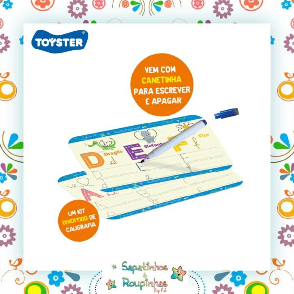 O kit de Caligrafia divertida auxilia na memorização da grafia das palavras, ajudando no desenvolvimento da escrita com as letras BASTÃO e CURSIVA. Divirta-se desenhando as letras do alfabeto, siga as linhas tracejadas e complete os desenhos.