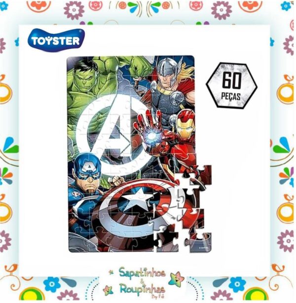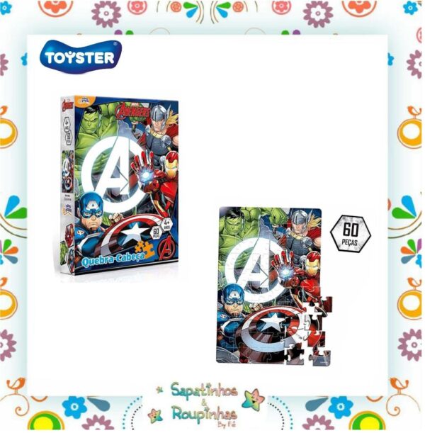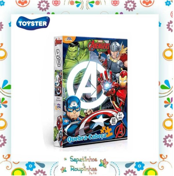 Divirta-se montando esse incrível quebra-cabeça de 60 peças do Vingadores. Peças em papel e papel cartão. Com alta qualidade de impressão para valorizar cada detalhe da imagem do quebra-cabeça. Pode ser montado em família ou amigos. é um ótimo passa tempo para crianças, adolescentes e adultos. Dimensões 22,6 x 34,5cm.