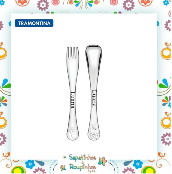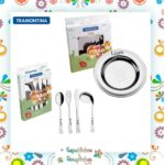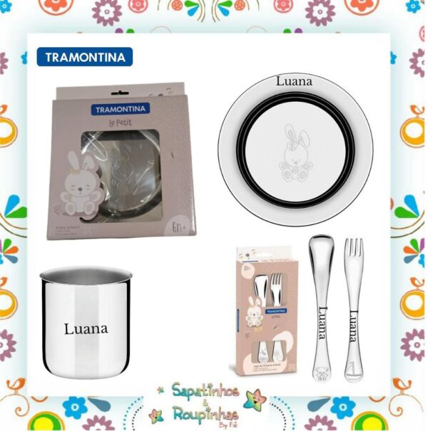 Tramontina – Kit talheres + prato + copo aço inox infantil Le Petit com gravação a laser
