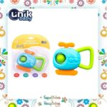 Ajuda a estimular a coordenação motora, a sensibilidade auditiva,visual e tátil.Ao balançar e apertar o chocalho emite sons diferenciados (sons de chocalho)