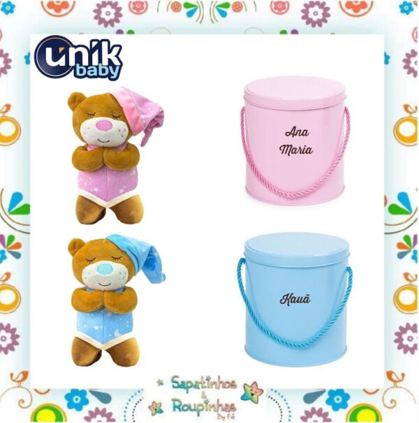 Unik Baby – Ursinho De Pelúcia Que Ora O Pai Nosso Com Embalagem Em Metal Com Gravação A Laser
